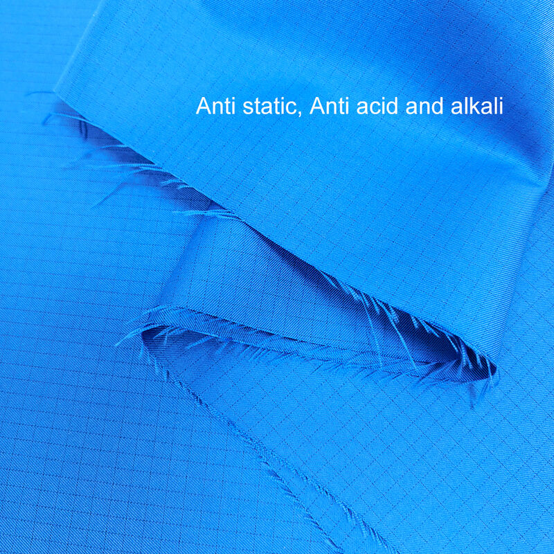 | Productnaam: | Blauwe ESD antistatische zuur-alkalistof | Materiaal: | 98% polyester + 2% koolstofvezel |